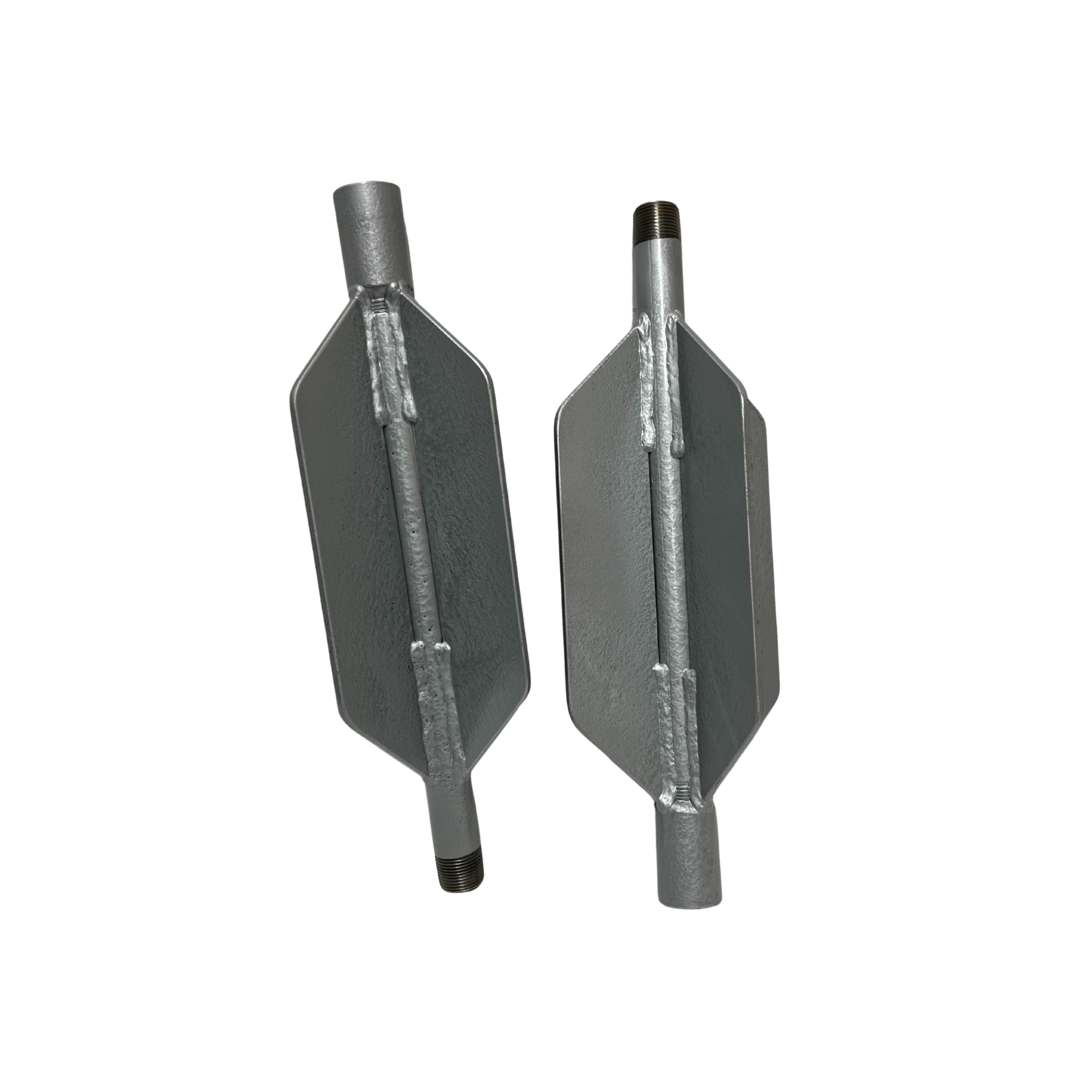 This Nozzle Extension does not have holes which makes it heavier than the standard four finned nozzle skid extension. The Material is Schedule 80 pipe and is painted finished.